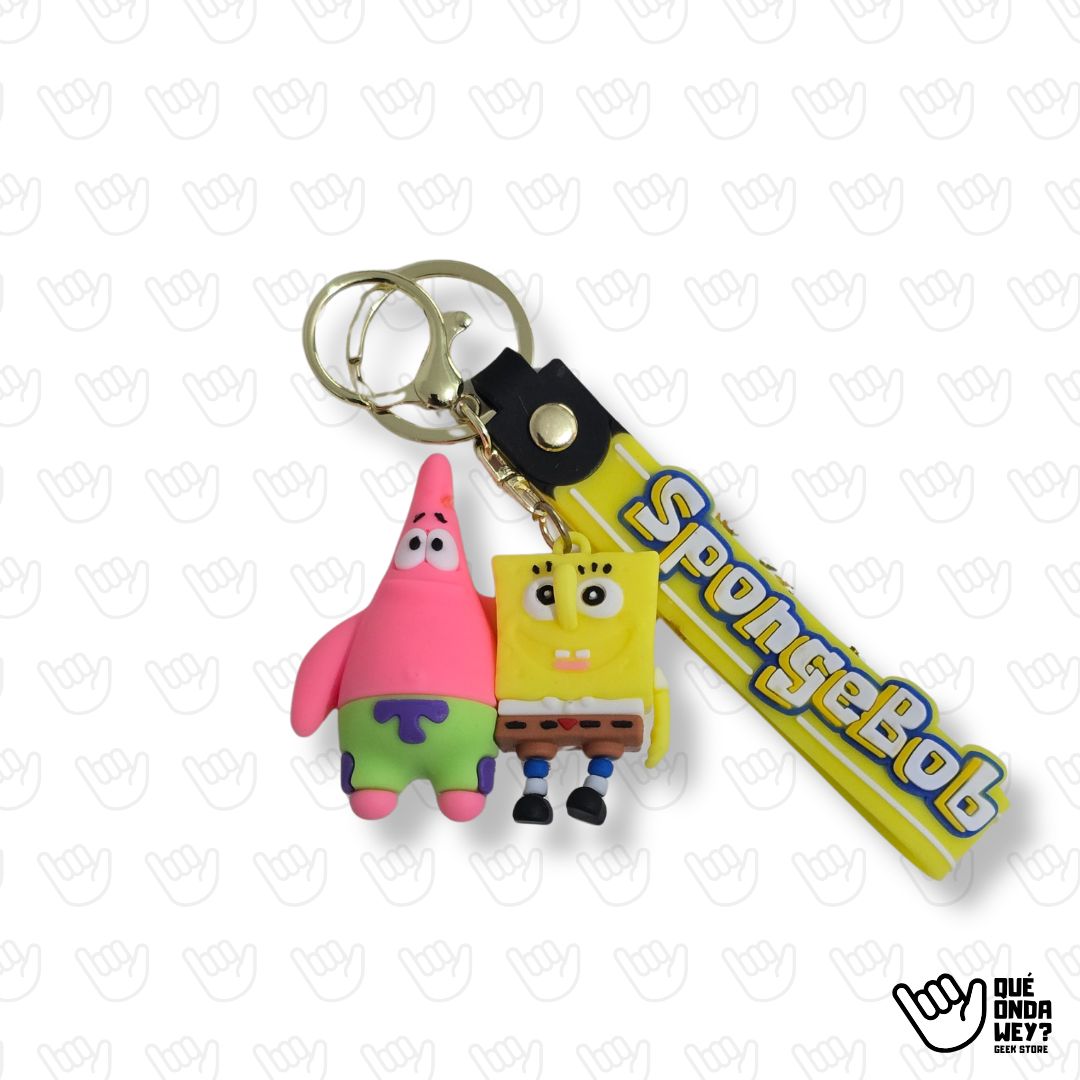 ¡La dupla más icónica del océano llegó para cuidar tus llaves! Bob Esponja y Patricio Estrella juntos en un solo llavero, con una correa de silicona amarilla con el logo de la serie. Ideal para llevar la buena onda de Fondo de Bikini a todos lados.