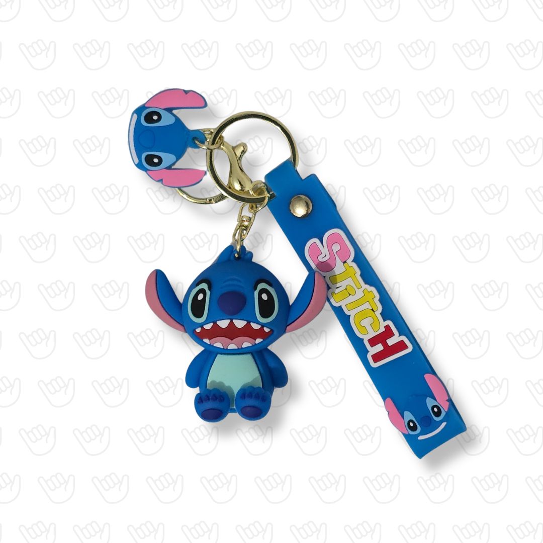¡Sumá travesura y amor hawaiano a tus llaves! Este llavero de Stitch azul con tira de silicona a juego es ideal para fans de Disney, coleccionistas y amantes del estilo único.