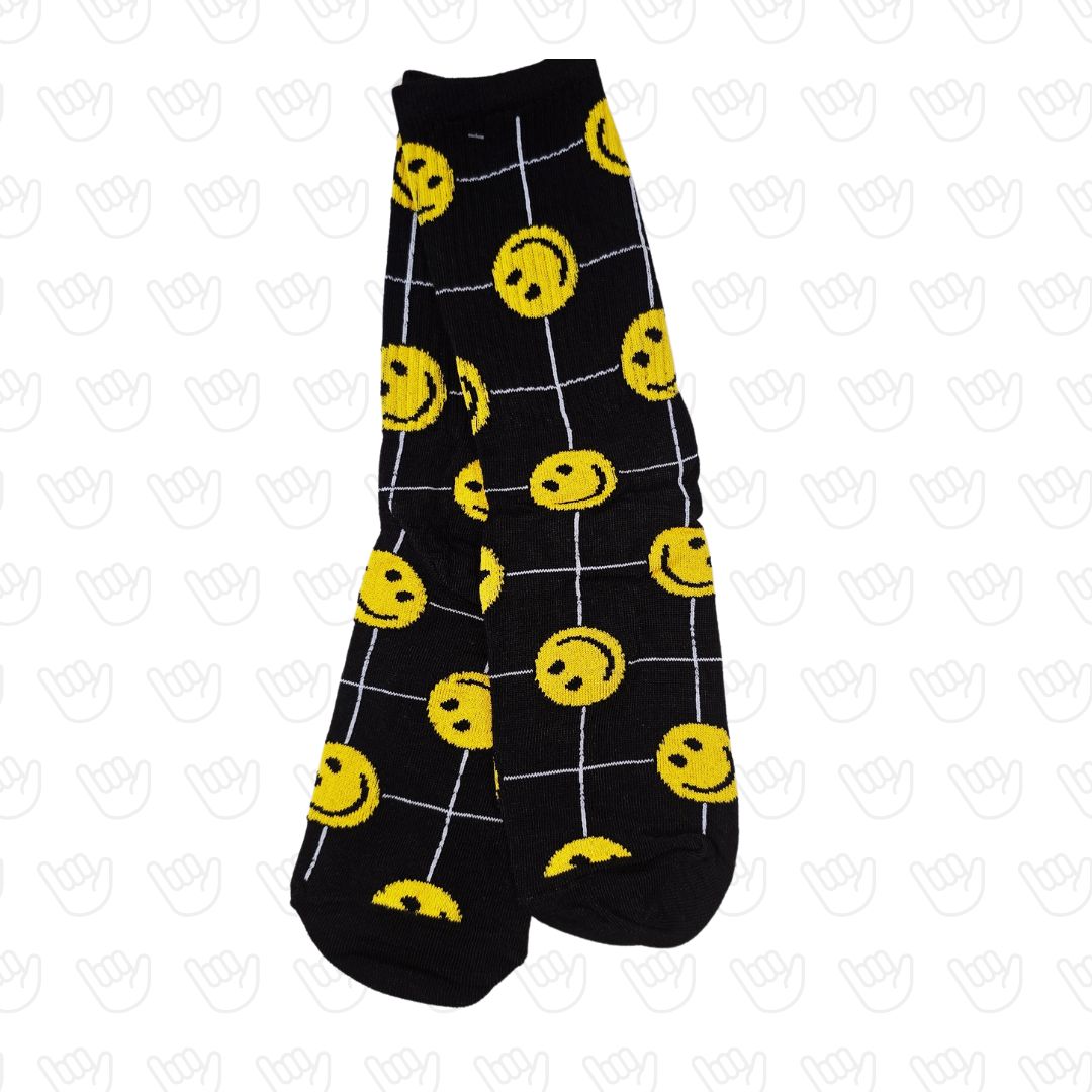 🧦 Medias Smiley Grid Black – Sonrisas en red 😄🖤